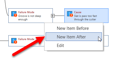 - In the structure tree diagram, right-click on the item where you want to insert a new item, then select New Item Before or New Item After, depending on the position of the new item.