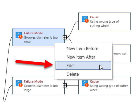 - In the structure tree diagram, right-click on the item you want to edit and select Edit