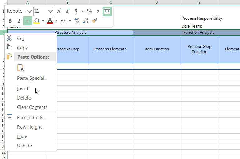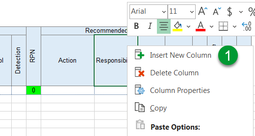 - You should not use Excel’s native insert tool (from right-click menu or home tab) to insert a new column with FMEA Studio’s document (worksheet).