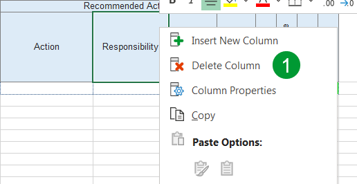 - Righ-click the header of the column you want to delete. In the right-click menu, select Delete Column.