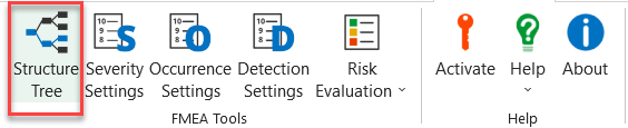 - Click on the Structure Tree button in the FMEA Studio ribbon tab to open the Structure Tree task pane.