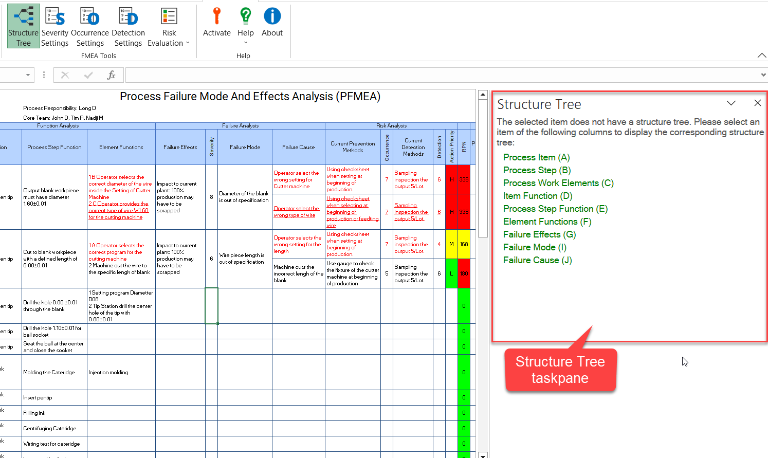 The structure Tree task pane not only provides diagram views for FMEA documents but also allows users to edit directly on the diagram.