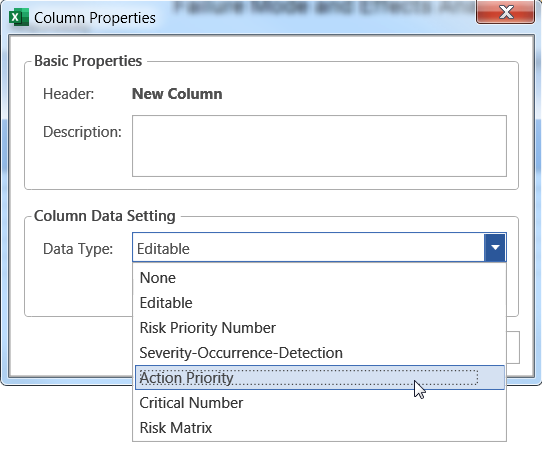 - Under Column Data Type setting, select Action Priority from the Data Type combo box. (The default data type of a new column is Editable)