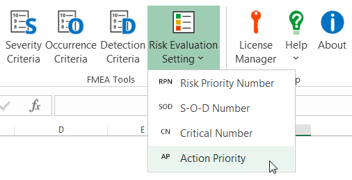 - Select Risk Priority Number from the Risk Evaluation Setting menu from the FMEA Studio tab.